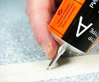 Тип А. Это клей жидкой консистенции. В нем содержится большое количество растворителя, который нужен для обработки краев склейки. Его нельзя применять для щелей более 2 мм. Главной особенностью данного материала является аккуратность создаваемого соединения и их незаметность для глаза. При этом сохраняется прочность и надежность. Не рекомендуется использовать его для ремонта. Так как он лучше подходит для работы с новыми листами линолеума.